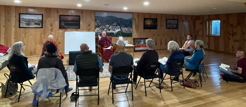 We read and discuss a book together. Past books include The Dhammapada, Bhikkhu Bodhi’s In Buddha’s Words, Rick Fields’ How the Swans Came to the Lake, and my own Where Dharma Meets Practice. We discuss the book, generally with me dominating the conversation.